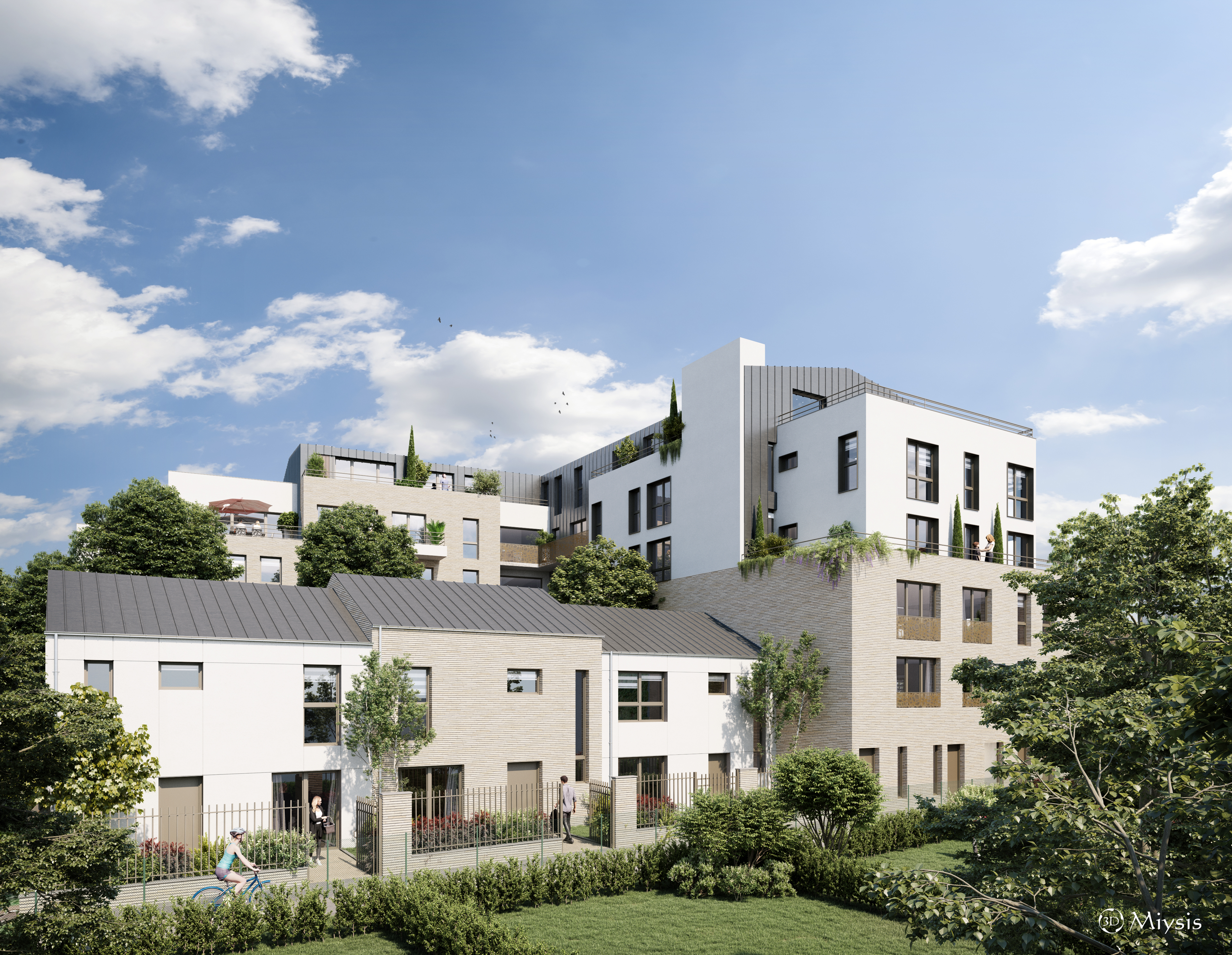 Ils offrent de beaux volumes, des séjours lumineux ouverts sur balcons, loggias ou terrasses, ainsi que des prestations de qualité avec parquet, carrelage, double vitrage et excellente isolation. Les maisons de ville, véritables biens d’exception, proposent une vie familiale privilégiée avec jardins privatifs dans une voie privée, au calme absolu.